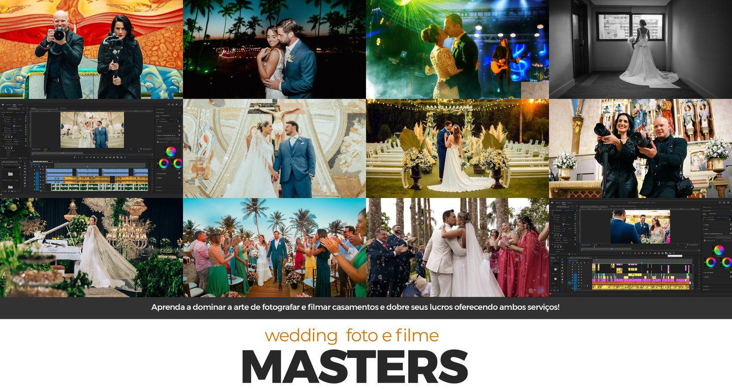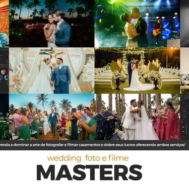 No curso Wedding Masters, você aprenderá desde o básico até as técnicas mais avançadas de fotografia e filme de casamentos. O conteúdo abrange configuração e equipamentos, foto e filme na prática (making of, pré-cerimônia, cerimônia e festa), edição de vídeo, direção de noivo, coordenação de equipe, iluminação e composição, atendimento, marketing e vendas.